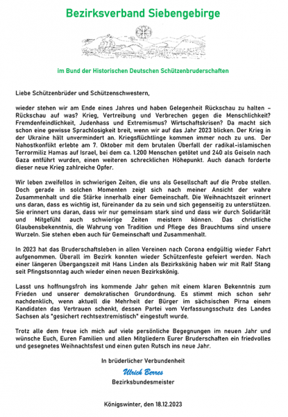 Weihnachtsgrüße des Bezirksverbandes Siebengebirge